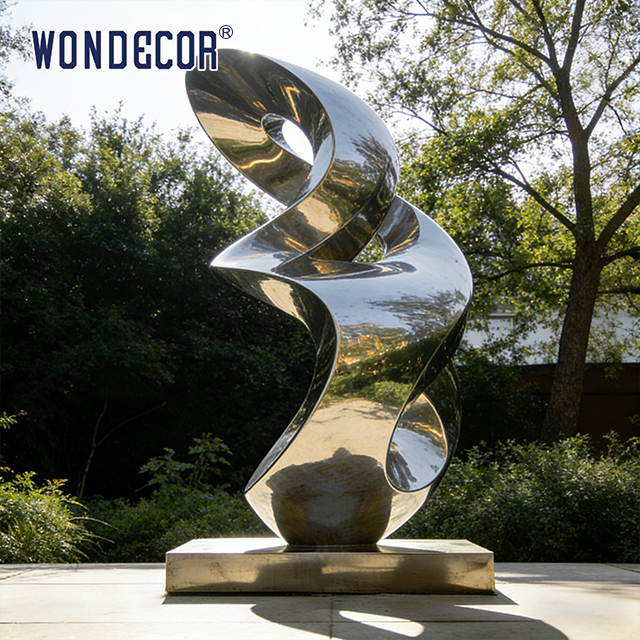 この「無限のエッセンス」ステンレススチール彫刻は、流れるような無限大のシンボル形状で、屋外の景観や商業スペースに最適な芸術的な設置物です。高研磨ミラー仕上げのステンレススチールで作られており、自然光の下で周囲の緑や空の光を反射して、環境とともに進化するダイナミックな光と影の効果を生み出すだけでなく、優れた耐候性も備えています。腐食防止、UV耐性があり、最小限のメンテナンスで屋外で数十年明るく光沢のある外観を維持します。ミニマルで流れるようなラインは、自然な生態環境と完璧に調和し、無限、循環、生命力の芸術的な意味合いを伝えながら、印象的な視覚的焦点となります。